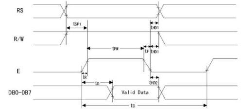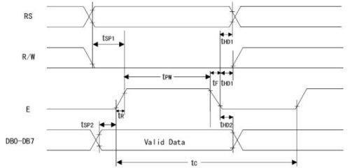 第6腳:E端為使能端,當(dāng)E端由高電平跳變成低電平時(shí),液晶模塊執(zhí)行命令。