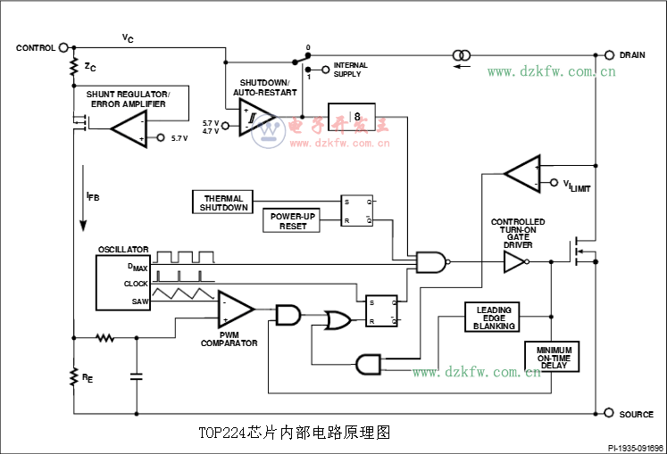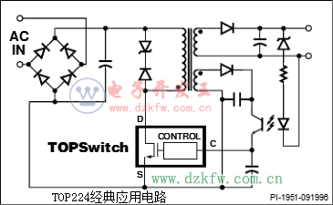 TOPSwitch的結合為交換所有必要的功能功率:模式成一個三端單片集成電路控制系統MOSFET,PWM控制器,高壓啟動電路,環路補償和故障保護電路。m.diks.com.cn