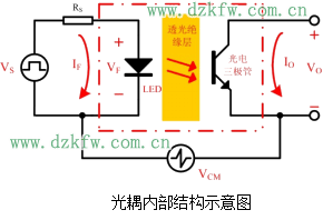 在光電耦合器內(nèi)部,由于發(fā)光管和受光器之間的耦合電容很小(2pF以內(nèi))所以共模輸入電壓通過極間耦合電容對輸出電流的影響很小,因而共模抑制比很高。