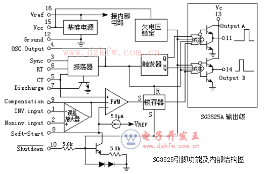 SG3525 是一種性能優(yōu)良、功能齊全和通用性強的單片集成PWM控制芯片,它簡單可靠及使用方便靈活,輸出驅(qū)動為推拉輸出形式,增加了驅(qū)動能力;內(nèi)部含有欠壓鎖定電路、軟啟動控制電路、PWM鎖存器,有過流保護功能,頻率可調(diào),同時能限制最大占空比。