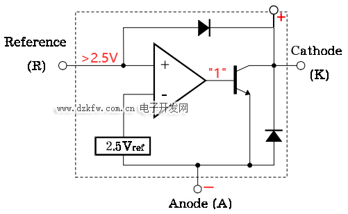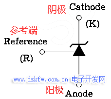 431系列基準穩壓源的符號多如圖1所示,看起來像穩壓二極管,但別穩壓二極管的符號多了一個參考端R。