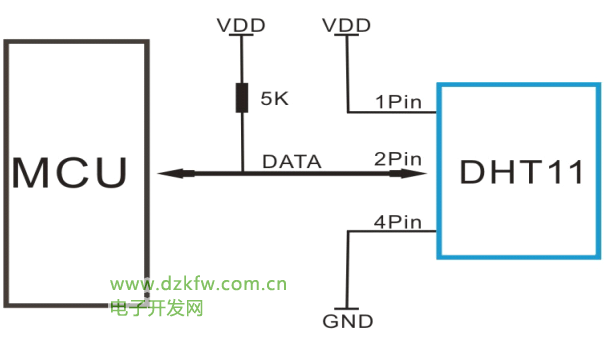DHT11傳感器應(yīng)用電路圖: