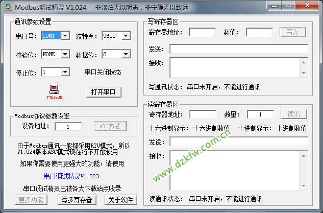 Modbus調(diào)試精靈是可以對使用Modbus協(xié)議的設(shè)備進(jìn)行調(diào)試的一款實(shí)用工具,軟件遵循標(biāo)準(zhǔn)Modbus協(xié)議,用戶可以自定義串口號、波特率、校驗(yàn)位、數(shù)據(jù)位等參數(shù),測試數(shù)據(jù)的發(fā)送和接收情況,輕松完成Modbus調(diào)試工作。KK下載站為您提供Modbus調(diào)試精靈 綠色免費(fèi)版下載,軟件使用完全免費(fèi),有需要的朋友可以下載使用哦!