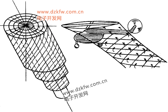 按照旋翼經典渦流理論,對于懸停及垂直上升狀態(即軸流狀態),旋翼渦系模型就像 一個半無限長的渦拄,由一射線狀的圓形 渦盤的附著渦系及多層同心的圓柱渦面(每層渦面 由螺旋渦線所組成)的尾跡渦系兩部分所構成(如下圖所示)。