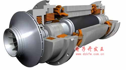 電磁鐵布置成徑向軸承和軸向軸承的形式,并提供磁拉力以抬起旋轉(zhuǎn)機(jī)器的轉(zhuǎn)軸。電磁鐵中的電流由一個(gè)精確的數(shù)字式控制柜調(diào)節(jié),提供磁力隨時(shí)應(yīng)對(duì)外部負(fù)載的變化以保持轉(zhuǎn)軸良好居中。這樣,轉(zhuǎn)軸被無接觸抬起,而且軸承的剛度和阻尼均可由一個(gè)數(shù)字式控制柜來調(diào)節(jié)。這些特點(diǎn)增強(qiáng)了高速旋轉(zhuǎn)機(jī)器的性能,使設(shè)備具有高可靠性、低能耗的顯著特點(diǎn)。
