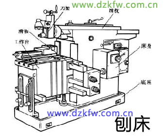 刨床系指用刨刀加工工件表面的機床。刀具與工件做相對直線運動進行加工,主要用于各種平面與溝槽加工,也可用于直線成形面的加工。