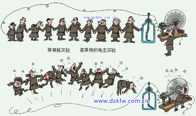實驗過程: 在班級里可以讓同學們手拉手,將萊頓瓶充電后,第一個人一只手握住瓶身,最后一個人觸摸錫紙小球,大家就會同時受到電擊跳起來,實驗效果杠杠的 快去試試吧!
