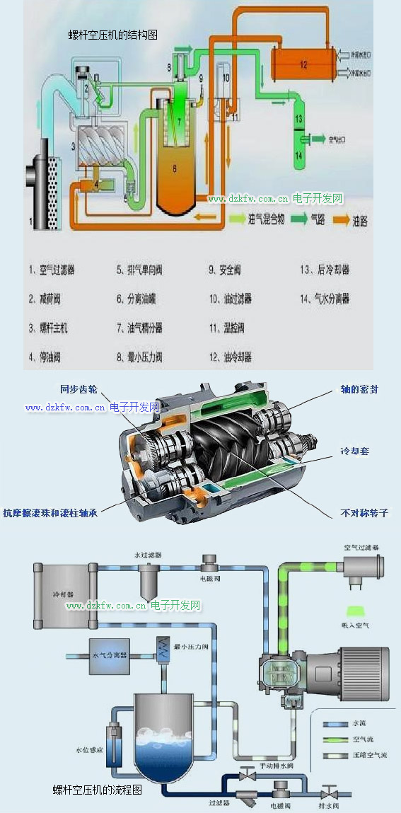 螺桿式空壓機(jī)工作原理、故障與維修、壓縮空氣后處理等知識(shí)