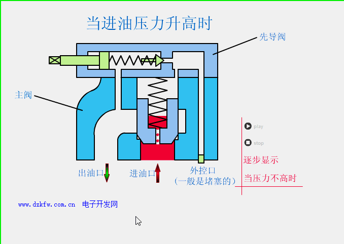 3. 順序閥是進(jìn)油壓力達(dá)到預(yù)調(diào)值時(shí),閥門開放使液流暢通。