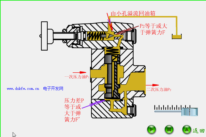 2. 減壓閥是用節(jié)流的方法使出口低于進(jìn)口壓力并保持出口壓力恒定的壓力控制閥;