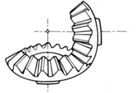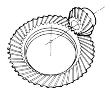 齒線為曲線,帶有螺旋角的錐齒輪。雖然與直齒錐齒輪相比,制作難度較大,但是作為高強度、低噪音的齒輪使用也很廣泛。