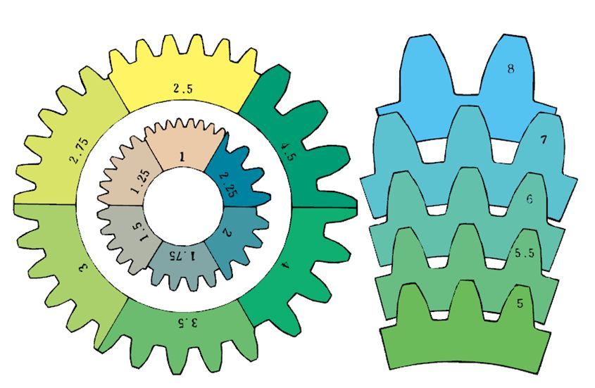 m1、m3、m8…被稱為模數1、模數3、模數8。模數是全世界通用的稱呼,使用符號m(模數)和數字(毫米〉來表示輪齒的大小,數字越大,輪齒也越大。