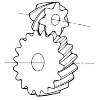 圓柱蝸桿副在交錯軸間傳動時的名稱。可在斜齒齒輪副或斜齒齒輪與正齒輪副的情況下使用。運轉雖然平穩,但只適合于使用在輕負荷的情況下。