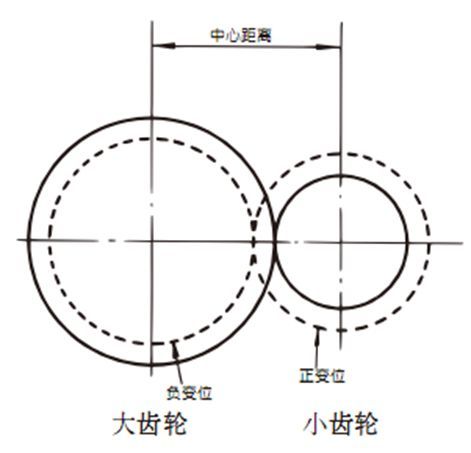 無法改變兩個齒輪的中心距時,對小齒輪進行正變位(避免根切),對大齒輪進行負變位,以使中心距相同。這種情況下,變位量的絕對值相等。