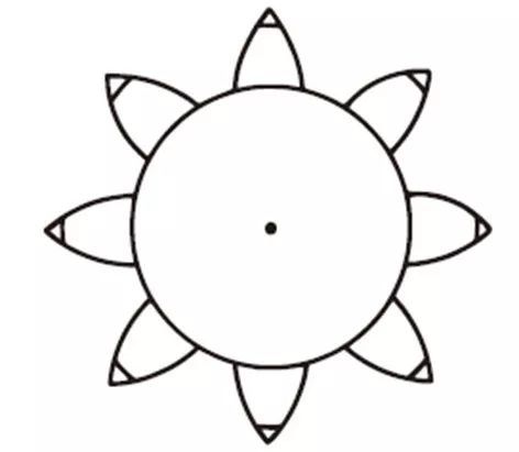 將圓筒8等分后,系上8根鉛筆,畫出8條漸開曲線。然后,將線向相反方向纏繞,按同樣方法畫出8條曲線,這就是以漸開曲線作為齒形,齒數為8的齒輪。