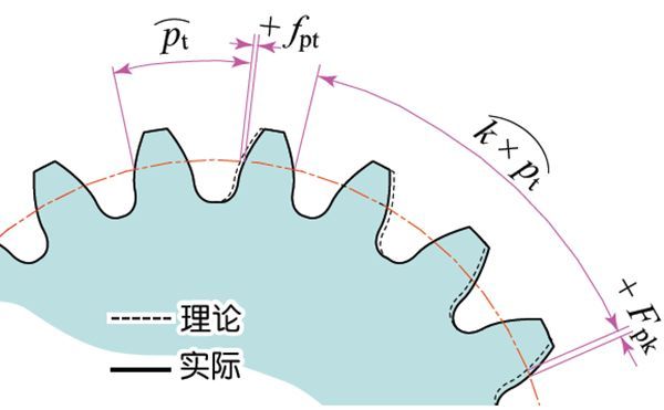 單齒距偏差(fpt)實際齒距與理論齒距的差。