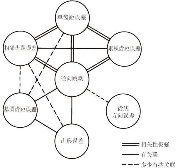 齒輪的各部分精度之間是有關聯的,一般來說,徑向跳動與其它誤差的相關性強,各種齒距誤差間的相關性也很強。