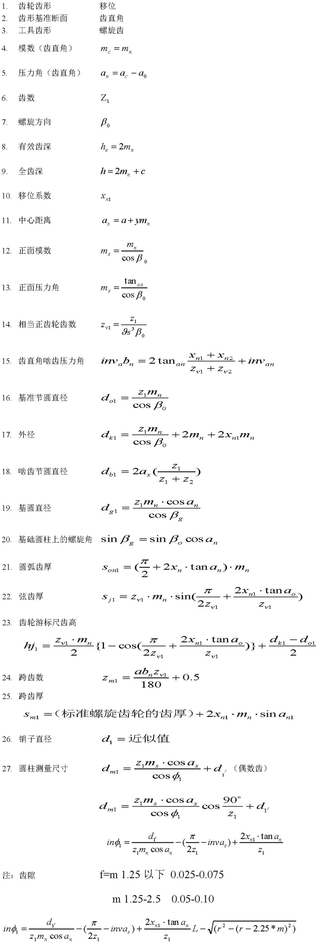 移位螺旋齒的計算公式(齒直角方式)(小齒輪①,大齒輪②)