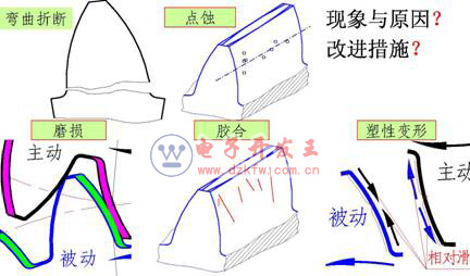 分析齒輪傳動失效形式的目的在于找出失效原因,以便確定設計準則,使所設計的齒輪傳動在預定的使用期限內能正常工作。