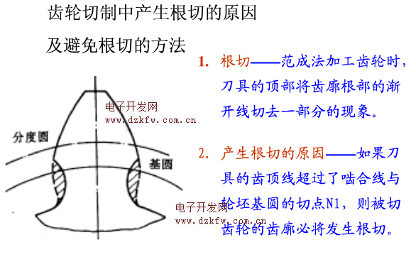 根切的后果:產生嚴重根切的齒輪,一方面削弱了輪齒的抗彎強度;另一方面將使齒輪傳動的合度有所降低,這對傳動是十分不利的。