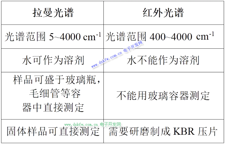 拉曼光譜與紅外光譜都是振動光譜,拉曼散射是散射光譜,紅外光譜是吸收光譜。紅外光譜與拉曼光譜是互補的,對于對稱分子,對稱振動是拉曼活性的,反對稱振動是紅外活性的。紅外光譜主要用于基團的檢測,拉曼光譜主要用于骨架的測定。拉曼位移與紅外吸收峰完全對應(yīng)。拉曼散射比紅外光譜強度更弱,因此要采用強光源。