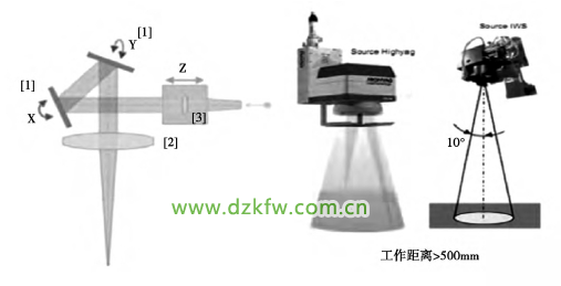 激光遠程焊接技術是將振鏡掃描頭安裝在機器人的第六軸上,利用鏡片擺動反射實現控制激光軌跡,機器手臂不需要相應擺動。激光遠程焊接系統工作效率極高,通過實踐發現一套系統工作相當于 6-9 套普通機器人點焊的工作效率。當激光頭與工件距離過遠,超過 5dm 時可以適當延長鏡頭保護玻璃的使用壽命,其技術工作原理如圖3. 3所示。