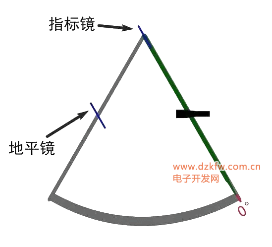 為了更簡化,這里設定指標臂歸零時,地平鏡、指標鏡、0刻度線,三者平行。