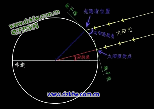 有了正午太陽高度角和赤緯角(太陽直射點的緯度)這兩項數(shù)據(jù),觀測者就知道自己所在的緯度了。