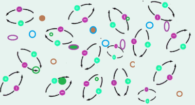 因為 “場”布滿了整個時空,所以,場概念的引進避免了經典物理中的超距作用(action at distance)。QED中有不可分離的電磁(光子)場和電子場。兩個場之間相互作用的計算,要比粒子與粒子之間作用的計算復雜得多。它們的直觀圖像也不容易想象。也許可以打個不恰當的比喻:一鍋白米粥與一鍋黒米粥混在一塊兒,沸騰后不停地冒泡。這使得“粥”分子之間相互影響,“漣漪”誘發“漣漪”,再誘發新的“漣漪”,將初始形態不斷傳播后構成最后的狀態。