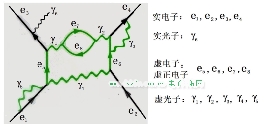 引進“虛粒子”的目的,是為了回答“相互作用是如何發生的”這一類問題。例如,當兩個電子互相接近時,它們會因為帶著同樣的負電荷而相互排斥。這種排斥顯然是通過電磁場(光子)起作用的,但我們并不見它們互射(真實的)光子。那么,量子電動力學(QED)如何來描述這個排斥作用發生的過程?