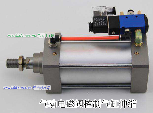 ▲圖 用兩個氣動閥氣孔閥來控制氣缸伸縮的運行