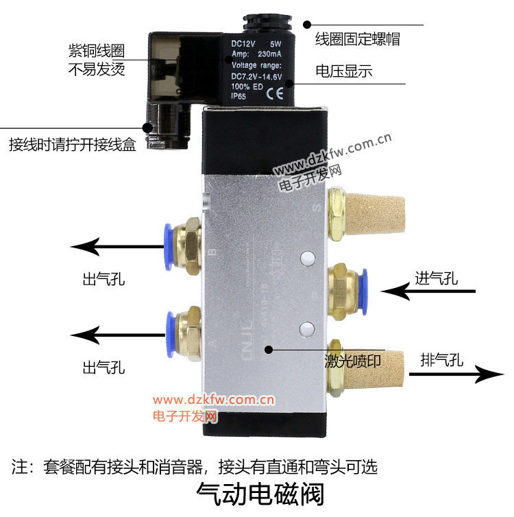 ▲圖 常用單頭氣動電磁閥原理與符號圖