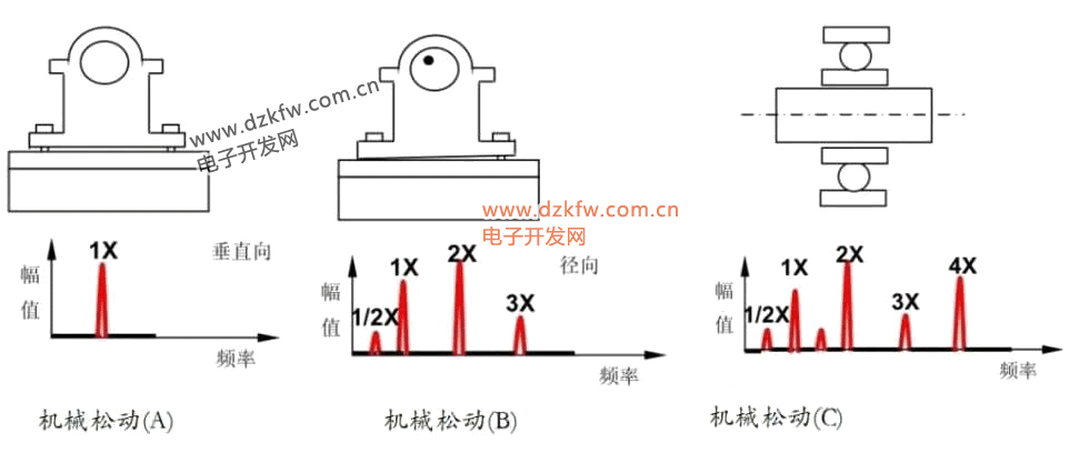 機械松動(B)癥狀特征:①由地腳螺栓松動引起的;②可能產生0.5X、1X、2X和3X轉速頻率振動時,由裂紋的結構或軸承座引起的。