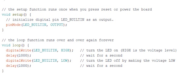 值得慶幸的是,IDE的設計者已經包含了許多示例,我們將加載閃爍示例,這可以通過單擊文件》示例》 01.Basics》 Blink來完成。如果一切順利,你應該看到以下代碼(你上面可能有一些灰色的注釋,但這沒關系):