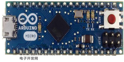 ArduinoMicro開發板是由Arduino與Adafruit聯合開發的板卡,由ATmega32U4供電。