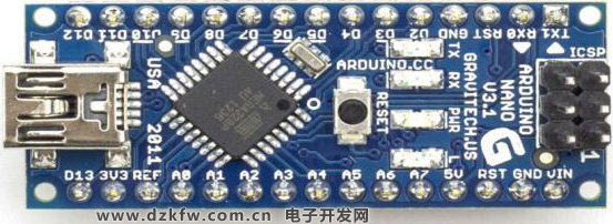 Nano的功能與ArduinoDuemilanove開發板大致相同,但封裝不同。Nano僅缺少一個直流電源插座,配合Mini-BUSB線使用,取替了標準USB線。此款板卡由Gravitech設計并生產。