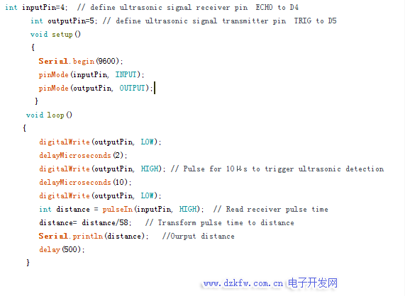 int inputPin=4; // define ultrasonic signal receiver pin ECHO to D4