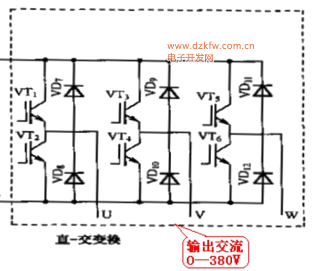 圖中,VT1—VT6,逆變管,VD7—VD12,續流二極管