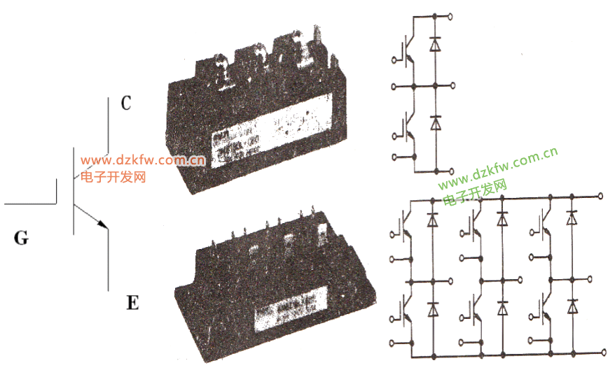 IGBT是MOS和GTR取長補短相結合的產物,具有柵極G、集電極C、和發射極E的三個引出端。