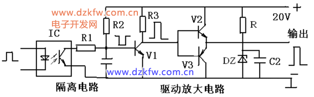 注:隔離電路中的光耦隔離集成塊容易損壞。