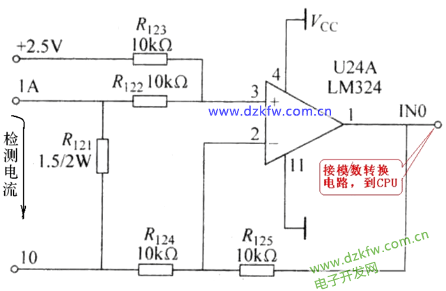 通過檢測變頻器的輸出電流,進行過流、過載計算,當判斷為過流、過載,立即封鎖變頻器的輸出脈沖,使PWM電路停止工作。R121為檢測電阻,檢測電流為1A。