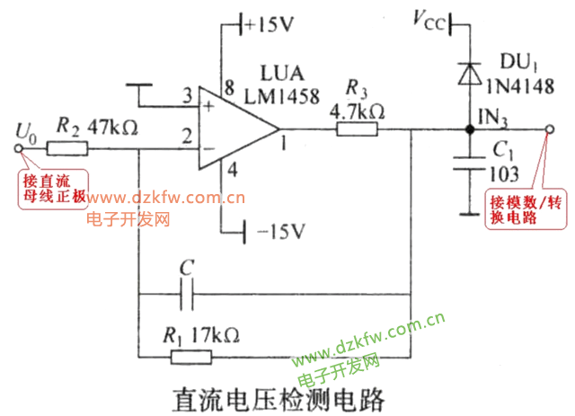 該電路是直流母線電壓的檢測電路,檢測直流母線欠壓或過壓。該電路出了問題,一是不能正確的提供檢測保護信號,產生誤報;二是失去保護功能,使制動電阻不能工作,引起主電路過壓而損壞。