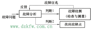 變頻器故障診斷中的基本環(huán)節(jié)包括了:檢查、分析、檢測(cè)、判斷。實(shí)際上檢查的目的是為分析奠定基礎(chǔ),而分析的目的就是要做出判斷,因此也可以認(rèn)為故障診斷包括檢查、分析和檢測(cè)3個(gè)基本環(huán)節(jié)。故障診斷的過程是一個(gè)檢查、分析與檢測(cè)交錯(cuò)進(jìn)行、循環(huán)往復(fù)、逐次逼近故障點(diǎn)的過程,故障診斷流程圖如圖1所示。
