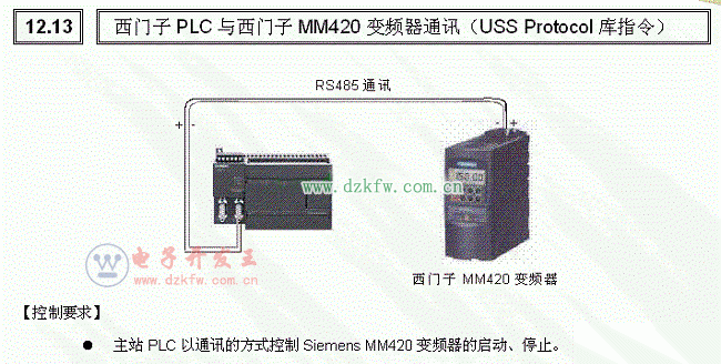 ③PLC與RS-485通信接口的連接。所有的標準西門子變頻器都有一個RS-485串行接口(有的也提供RS-232接口),采用雙線連接,其設計標準適用于工業環境的應用對象。單一的RS-485鏈路最多可以連接30臺變頻器,而且根據各變頻器的地址或采用廣播信息,都可以找到需要通信的變頻器。鏈路中需要有一個主控制器(主站),而各個變頻器則是從屬的控制對象(從站)