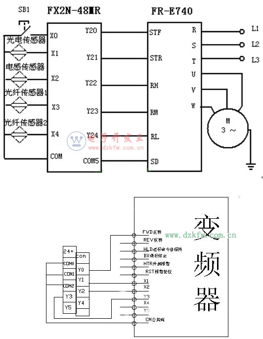 使用繼電器觸點進行連接時,有時存在因接觸不良而誤操作現象。使用晶體管進行連接時,則需要考慮晶體管自身的電壓、電流容量等因素,保證系統的可靠性。另外,在設計變頻器的輸入信號電路時,還應該注意到輸入信號電路連接不當,有時也會造成變頻器的誤動作。例如,當輸入信號電路采用繼電器等感性負載,繼電器開閉時,產生的浪涌電流帶來的噪聲有可能引起變頻器的誤動作,應盡量避免。