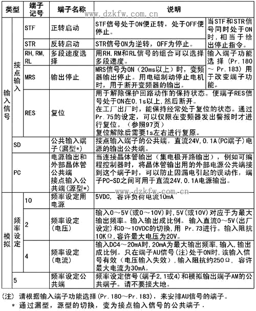 ③由于控制回路的頻率輸入信號是微小電流,所以在接點輸入的場合,為了防止接觸不良,微小信號接點應使用兩個并聯的接點或使用雙生接點。