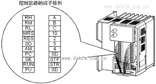 ⑨運行后,改變接線的操作,必須在電源切斷10分鐘以上,用萬用表檢查電壓后進行。斷電后一段時間內,電容上仍然有危險的高壓電。2.控制回路端子說明及接線