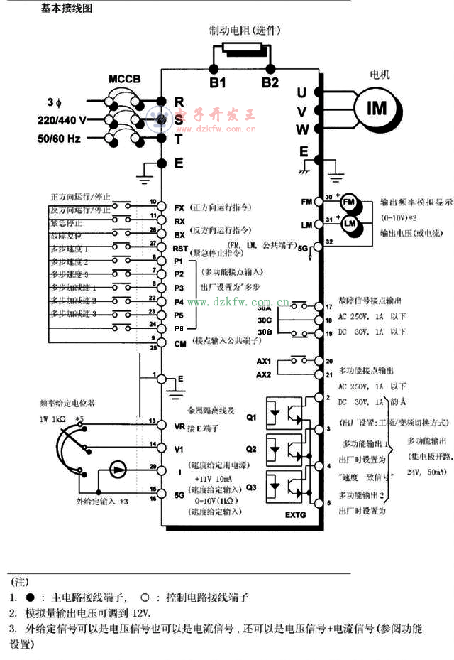 2.變頻器的控制電路端子接線排。