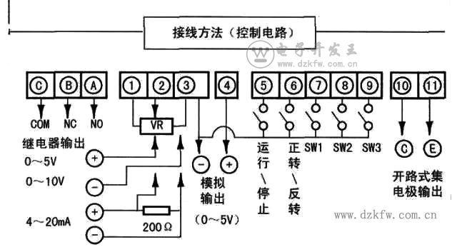 2、由于控制電路的頻率輸入信號是微小電流,所以在接點輸入的場合,為了防止接觸不良,微小信號接點應(yīng)使用兩個并聯(lián)的節(jié)點或使用雙生接點。