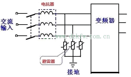 1、如果電源是架空進線,在進線處裝設變頻專用避雷器,或按規范要求在離變頻器20m的遠處預埋鋼管做專用接地保護。如果電源是電纜引入,則應做好控制室的防雷系統。實踐表明,這一方法基本上能夠有效解決雷擊問題。